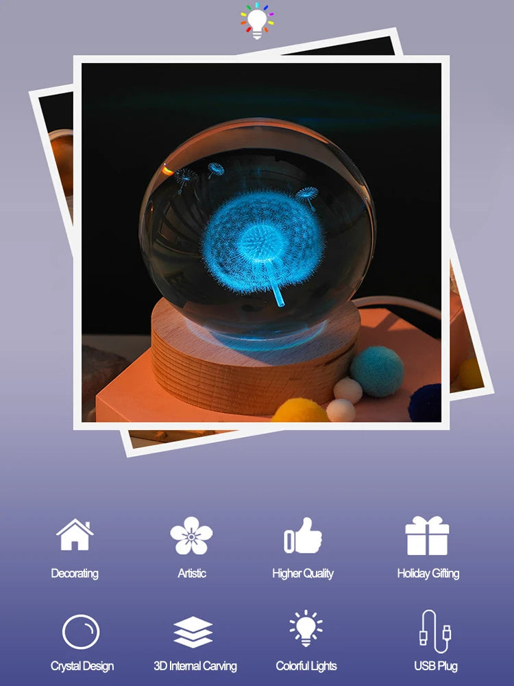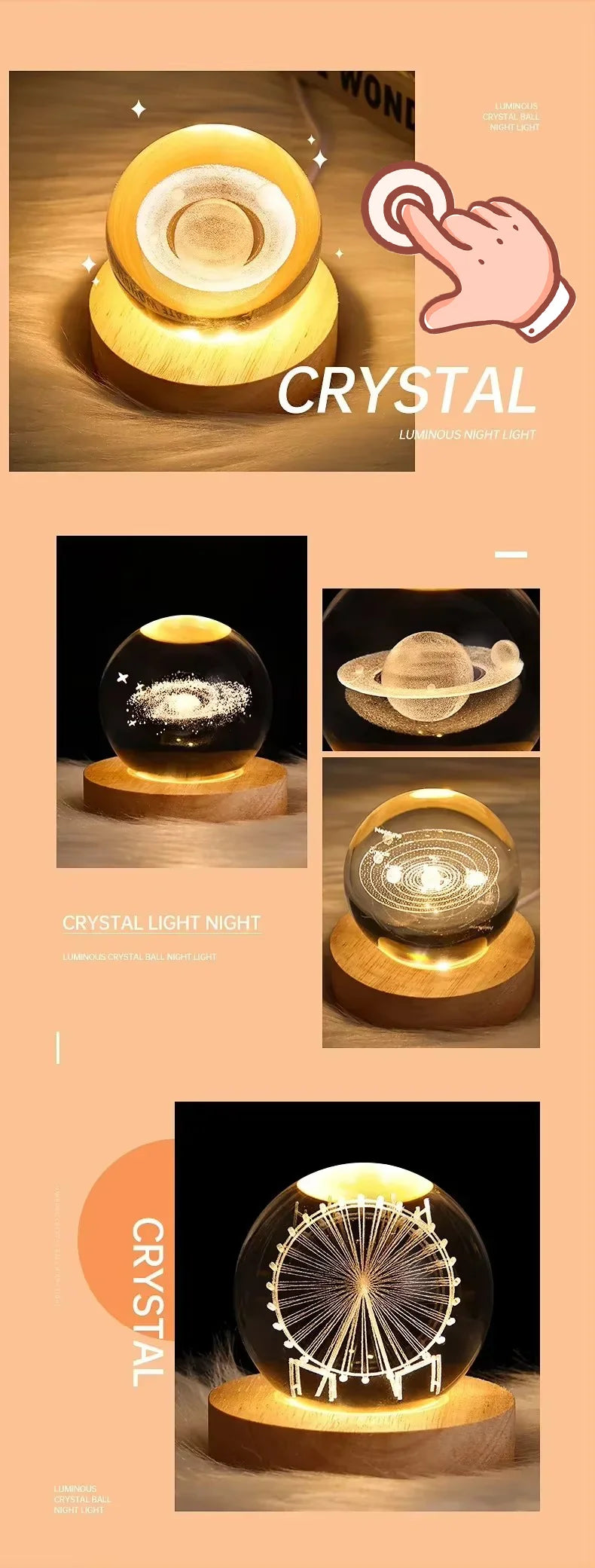 USB LED night light, Galaxy Crystal Ball lamp, 3D planet moon lamp, home decoration