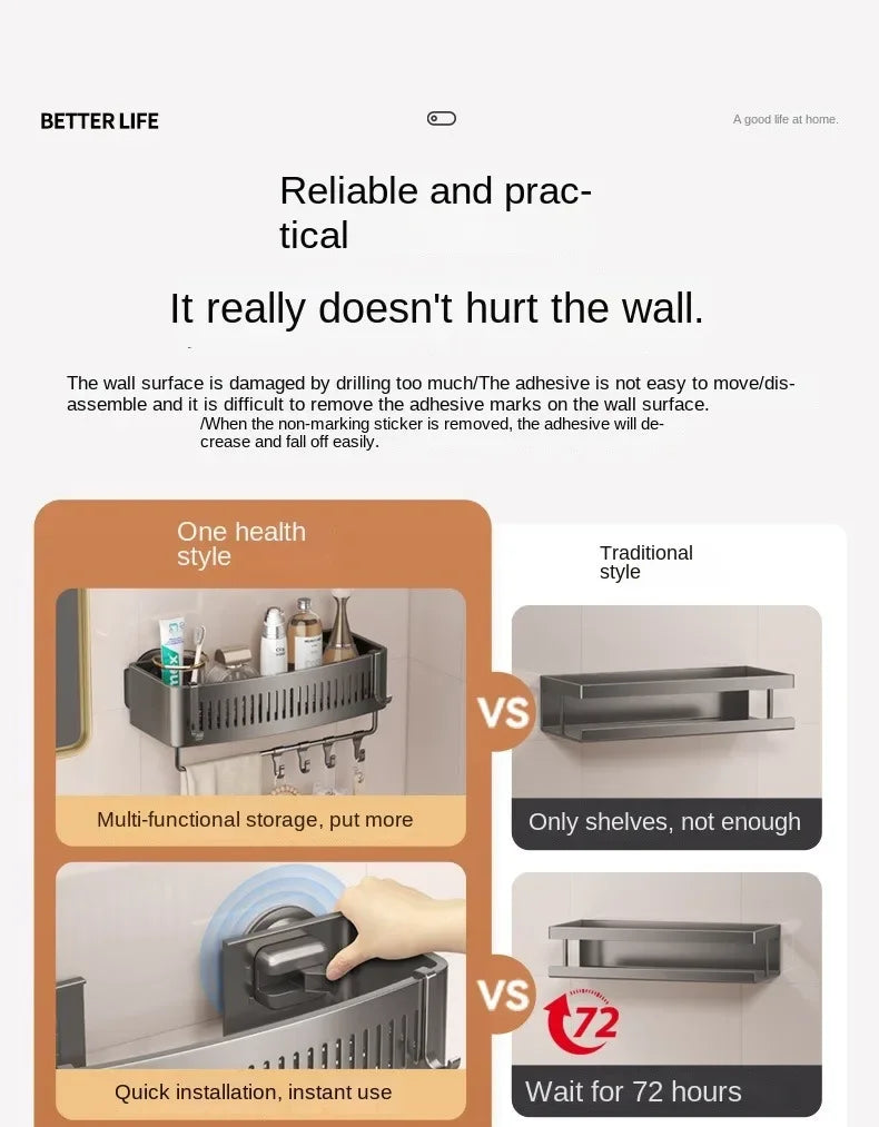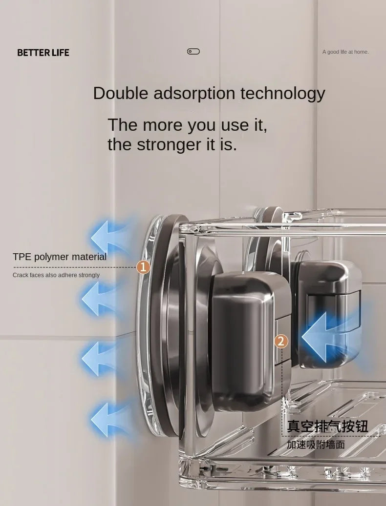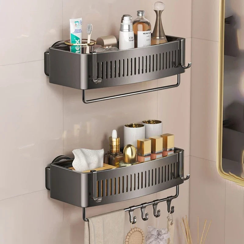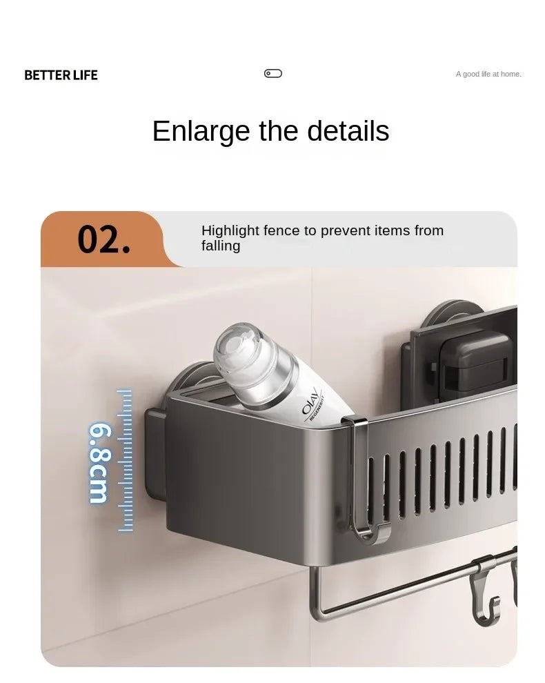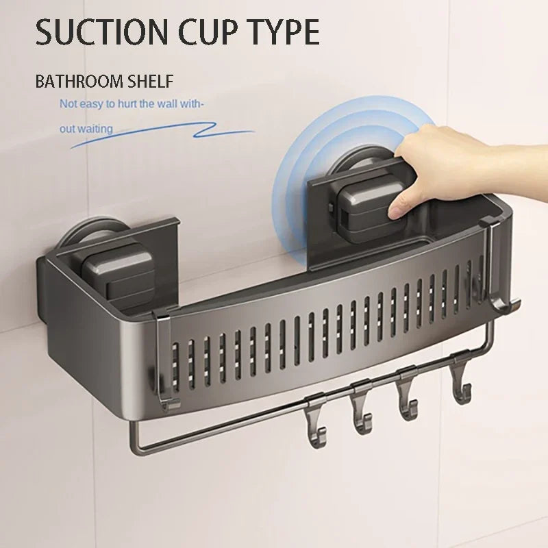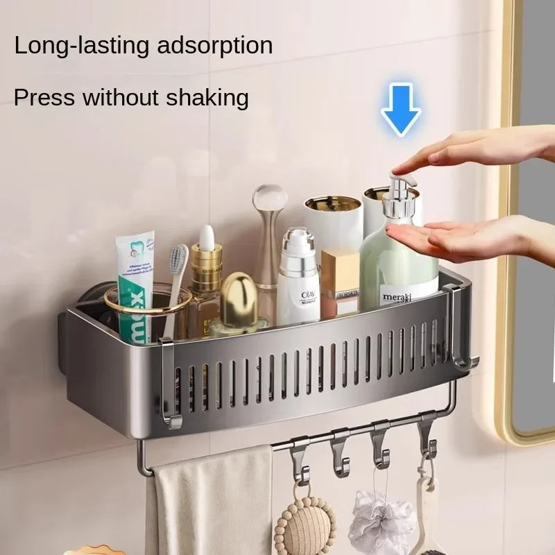 Vacuum Suction Cup Bathroom Shelf Wall Mounted Thickened Aluminum Bathroom Shelves No Drilling Shower Organizer Bathroom Storage
