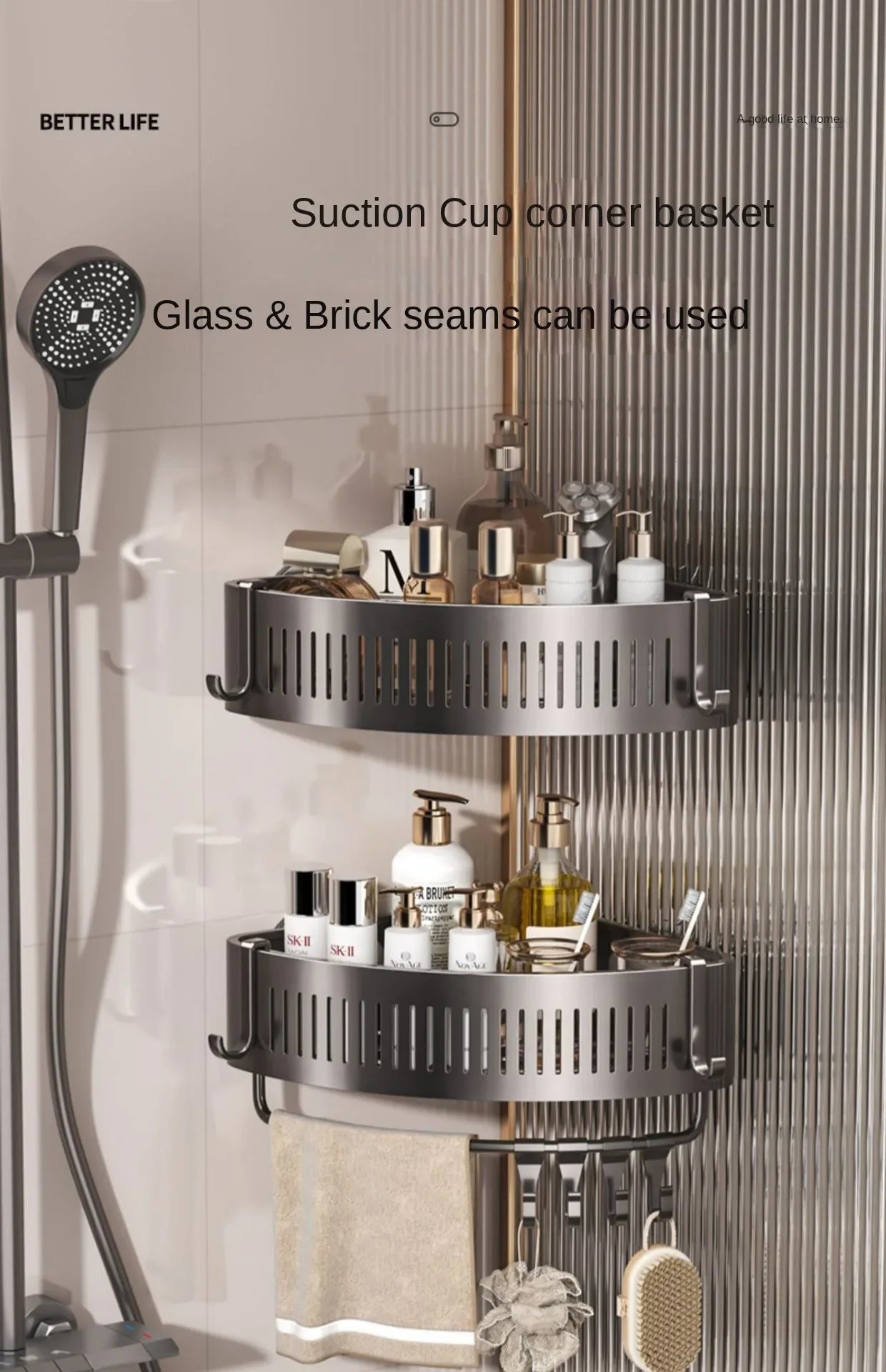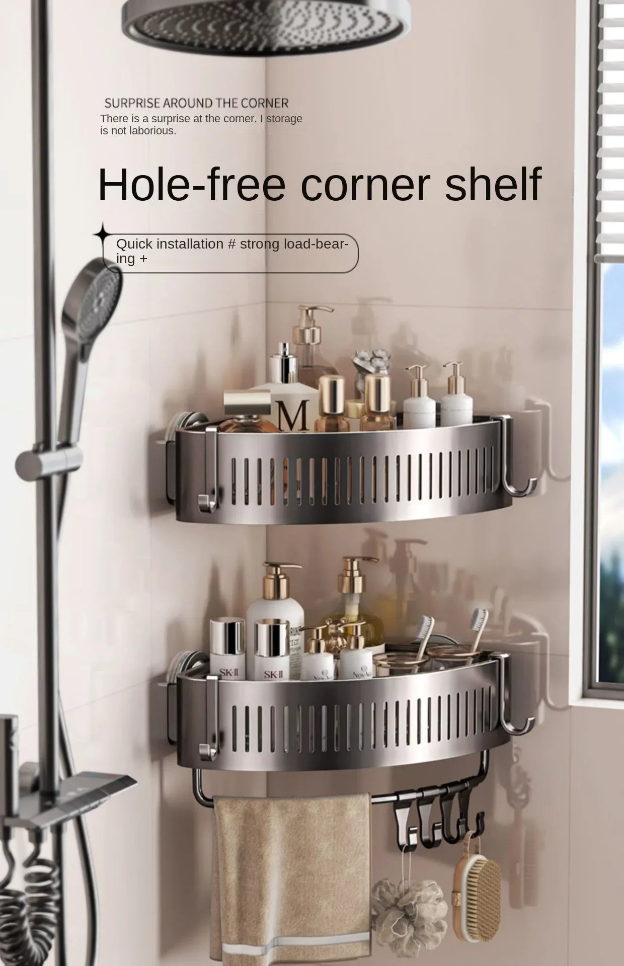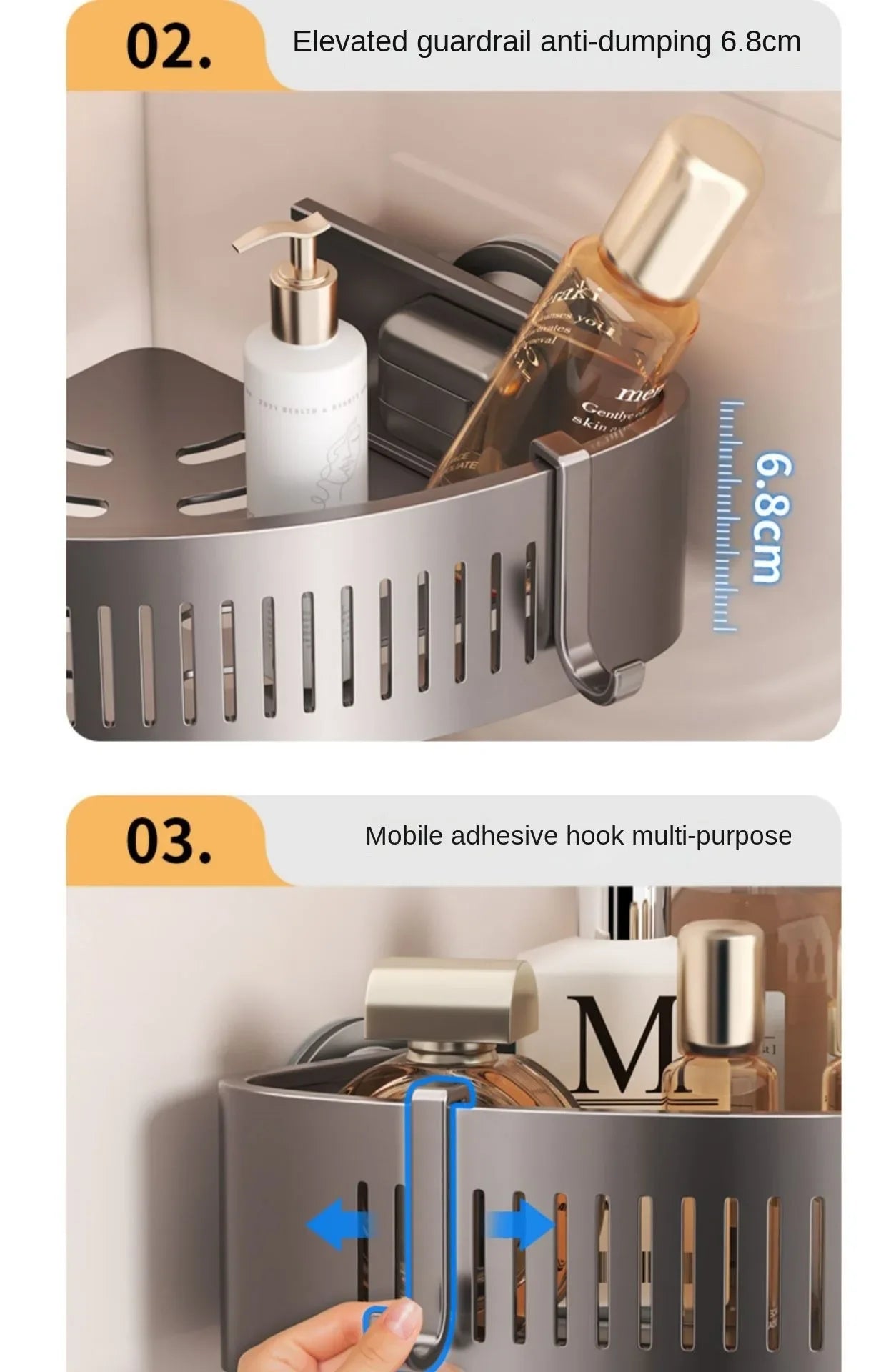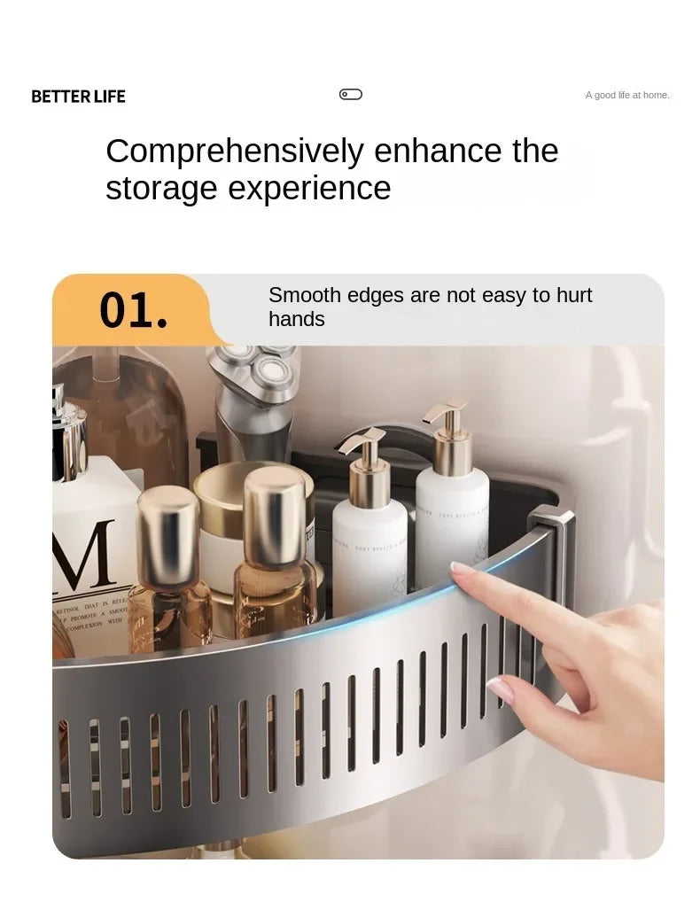 Vacuum Suction Cup Bathroom Shelf Wall Mounted Thickened Aluminum Bathroom Shelves No Drilling Shower Organizer Bathroom Storage