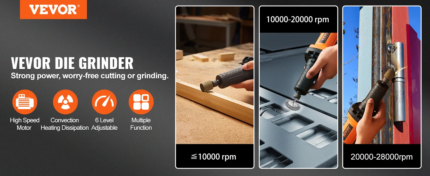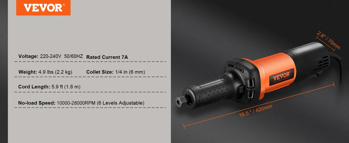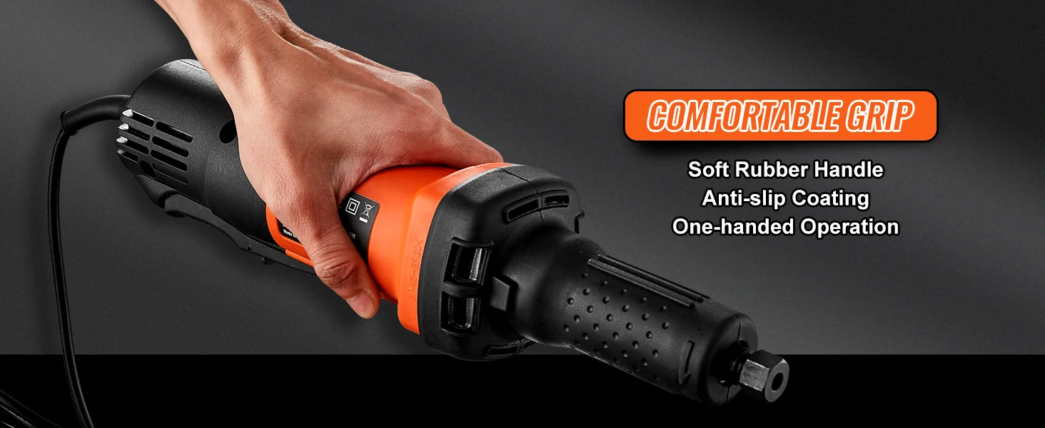 【Unleash Your Power】 The VEVOR Die Grinder features an industrial-grade motor with exceptional torque, faster output, and a durable design, all while weighing just 1.9KG for easy and flexible use. It's capable of performing medium to heavy-duty load processing tasks in professional settings.