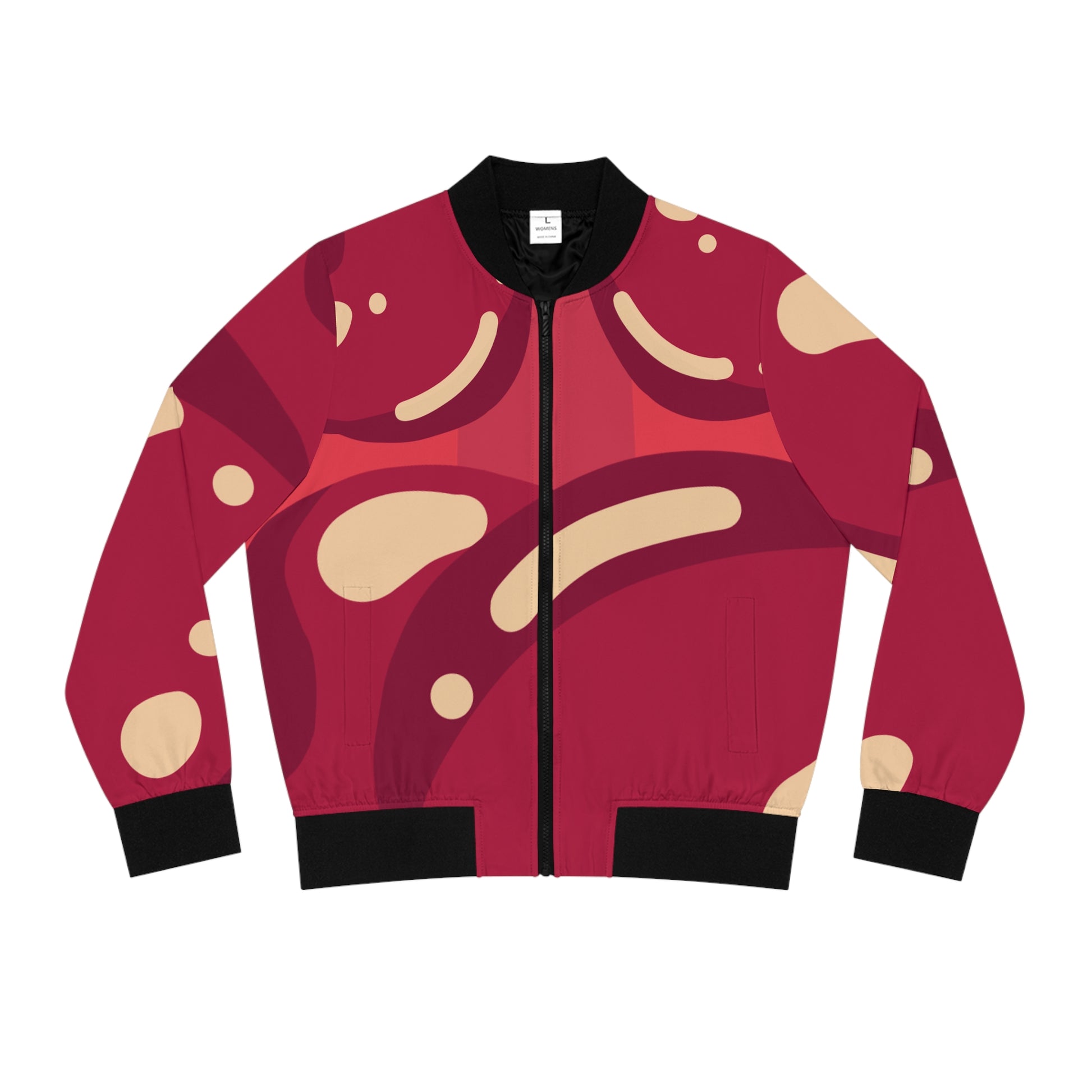 This vibrant bomber jacket is the perfect blend of comfort and style. Made from 100% polyester, it’s not only strong and durable, but also retains its shape while drying quickly. The ribbed collar and cuffs offer a cozy fit, while the practical front pockets add a functional touch. Ideal for those who love to express themselves through unique fashion, this jacket suits women who appreciate contemporary design and bold colors. It's perfect for casual outings, music festivals, or cozy gatherings with friends. This jacket makes a thoughtful gift for birthdays, holidays, or just because. Embrace a laid-back vibe with this stylish piece, designed to elevate any outfit and make a statement.