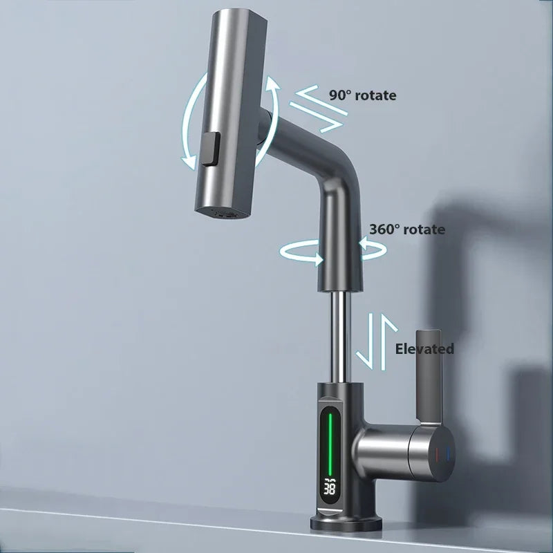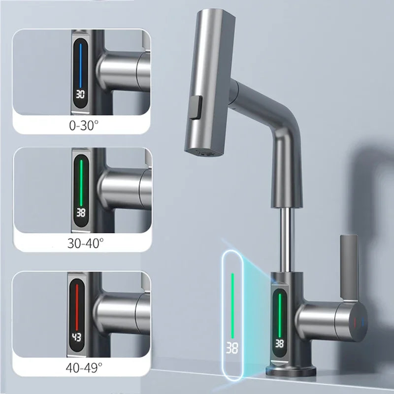 Waterfall Temperature Digital Display Basin Faucet Lift Up Down Stream Sprayer Hot Cold Water Sink Mixer Wash Tap For Bathroom