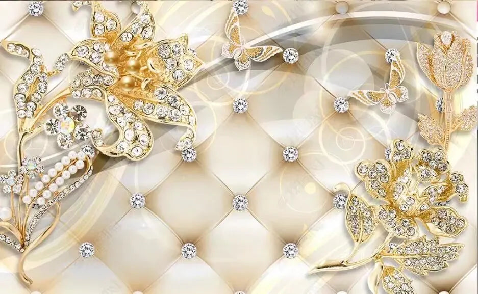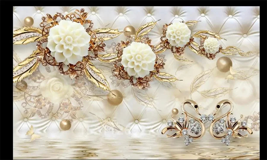 wellyu Custom 3D wallpaper luxury black dahlia soft bag jewelry обои TV background wall living room bedroom moisture wallpaper
