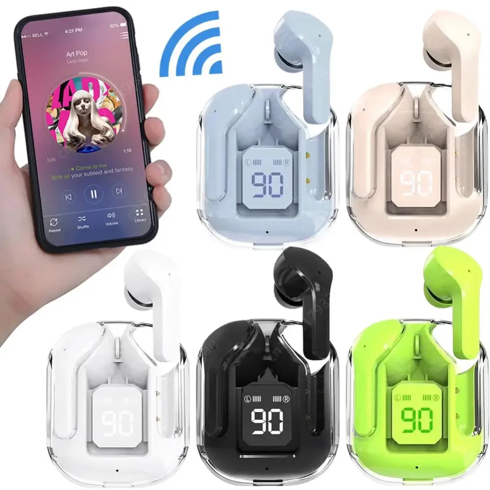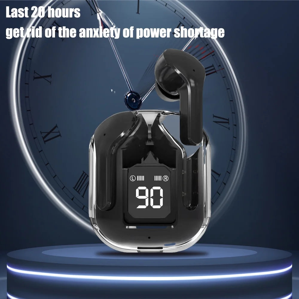 Wireless Bluetooth 5.3 Air Headset Transparent Headphones LED Power Digital Display Stereo Sound Earphones for Sports Working