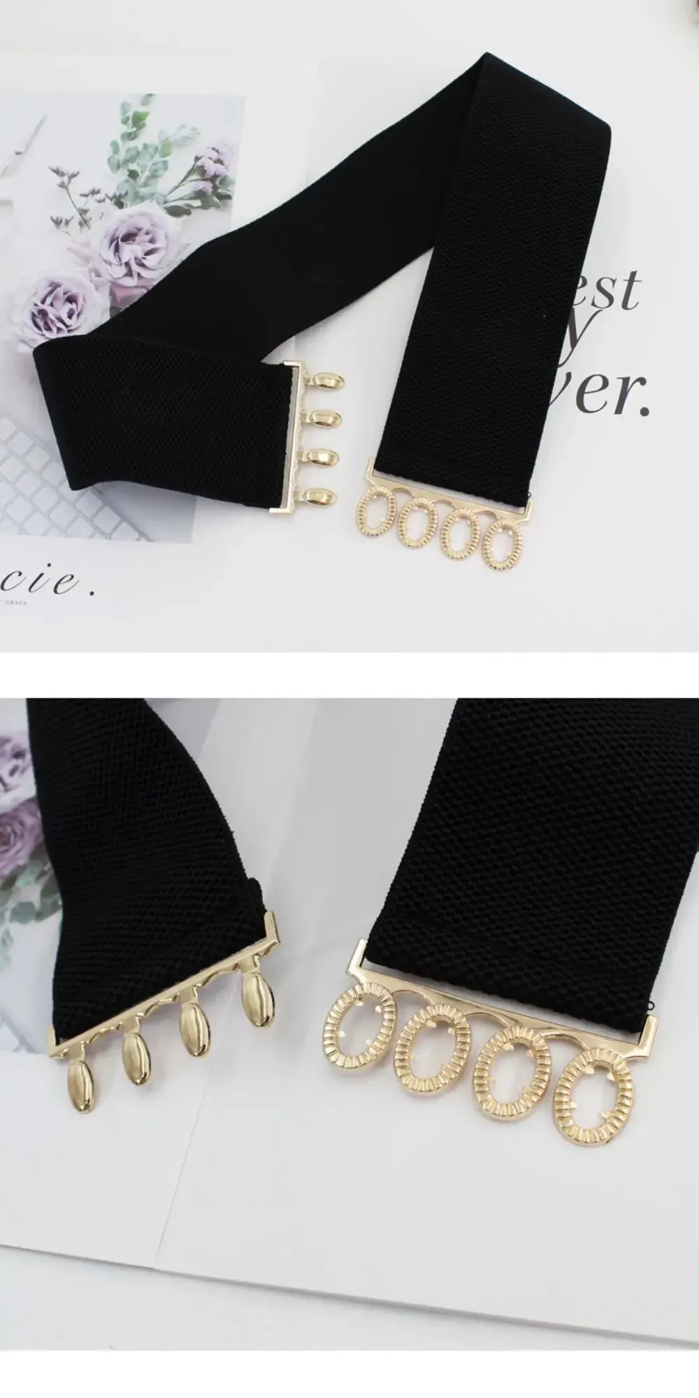 Women Belt Fashion Elastic Waist Cover Golden Buckle Elastic Waist Closure Versatile Wide Belt Paired With Dress Coat Lady Belts