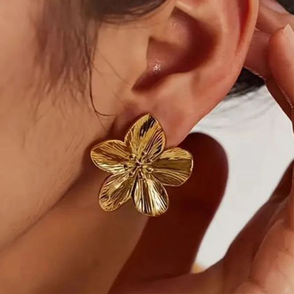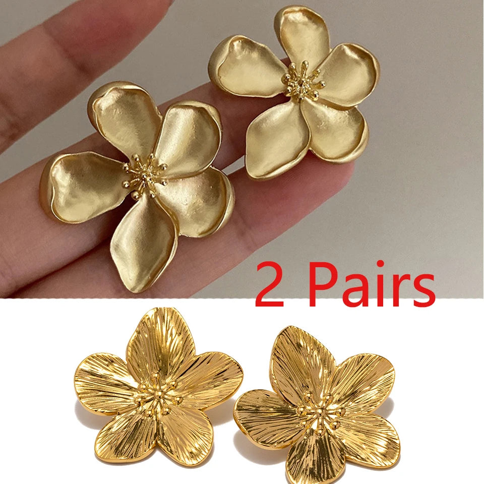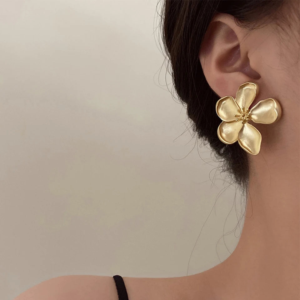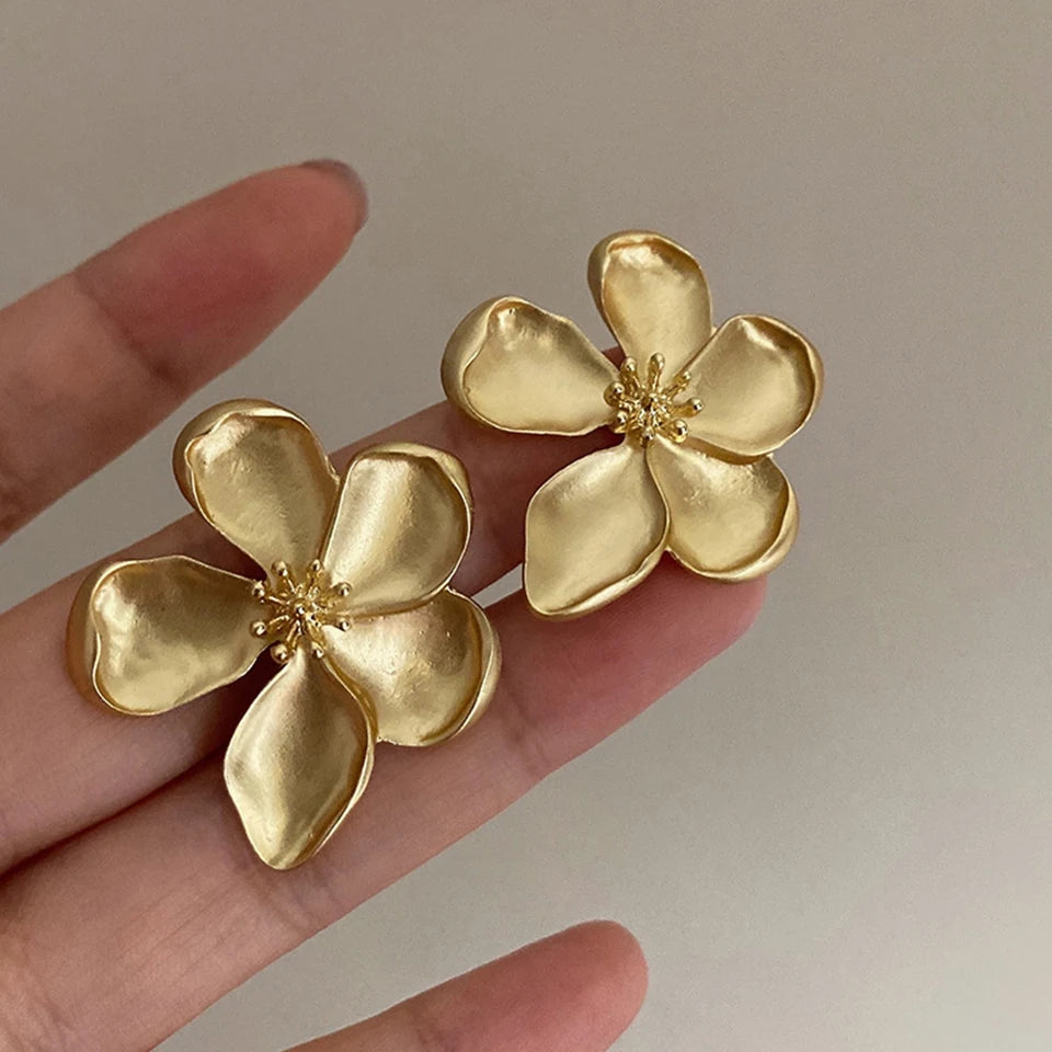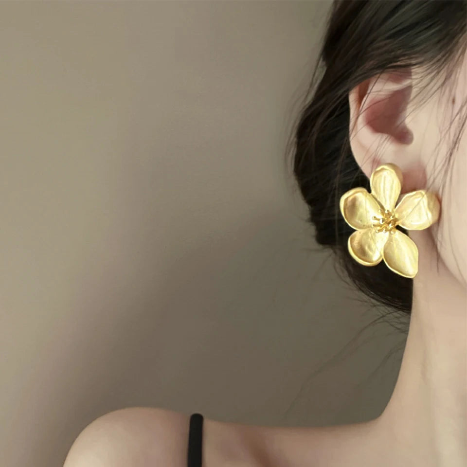 Yupsk Matte Texture Metal Flower Earring for Women French Retro Gold Color Five-leaf Flowers Fashion Party Jewelry